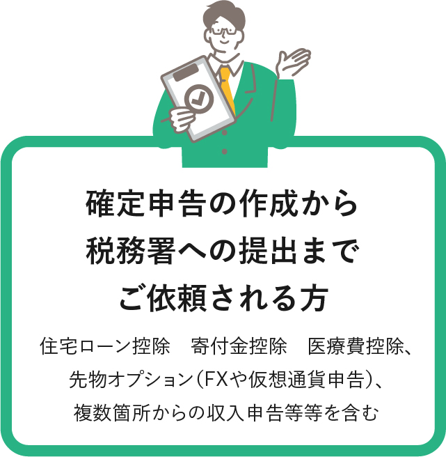 ※ご依頼内容の状況に応じ、税理士判断により確定申告期限後での対応となる旨、ご案内させていただく場合もございます。