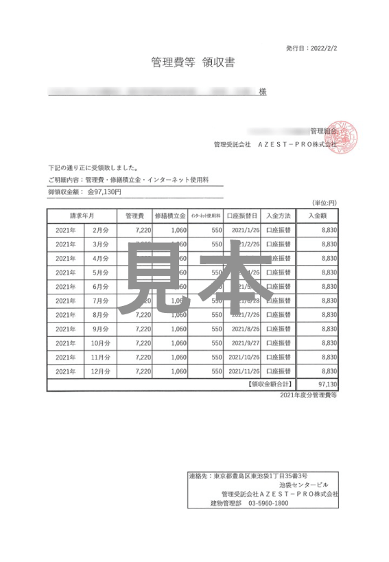 2.管理費・修繕積立金の支払い額がわかる書類について2.管理費・修繕積立金の支払い額が