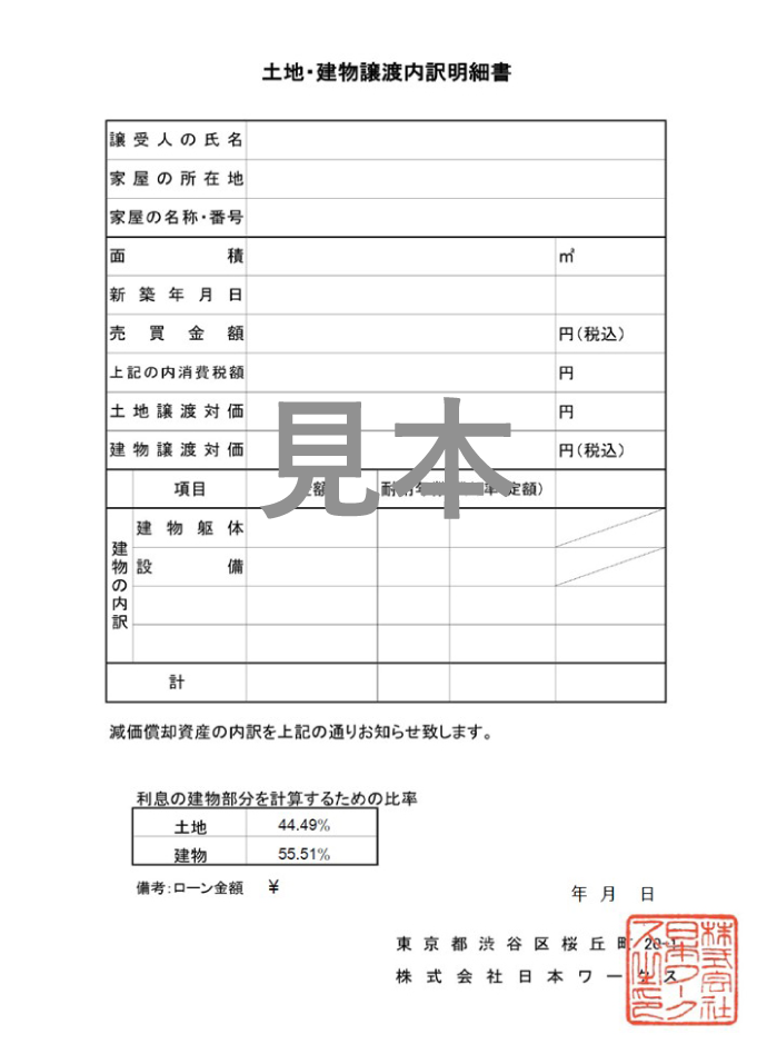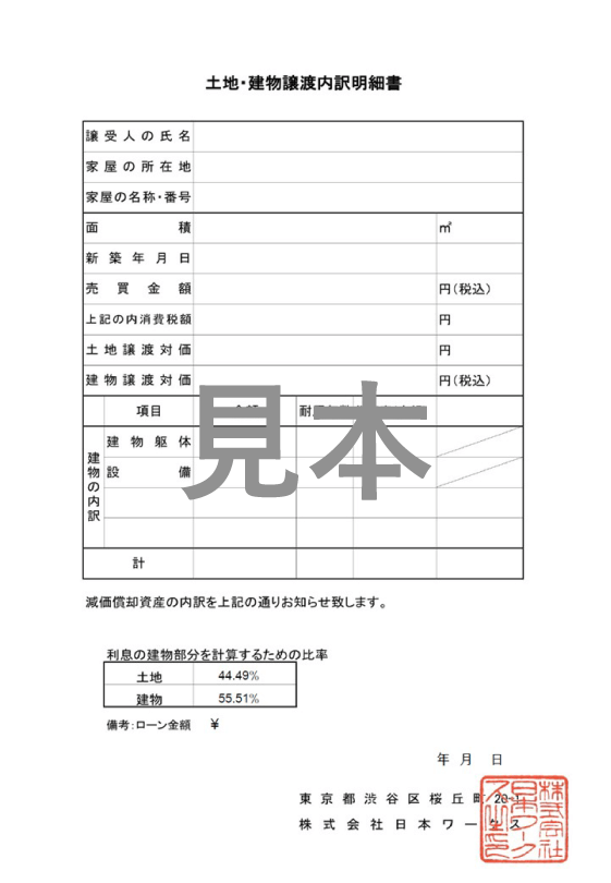 ②他社からご購入の場合、販売会社が交付している同様の書類をご用意ください。(名称は各社異なりますが、建物金額を躯体金額と設備金額に分けた明細書となります。)