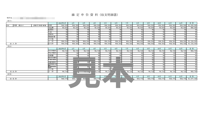 (収入明細や経費明細等も必要ですので、こちらも合わせてご用意ください。)