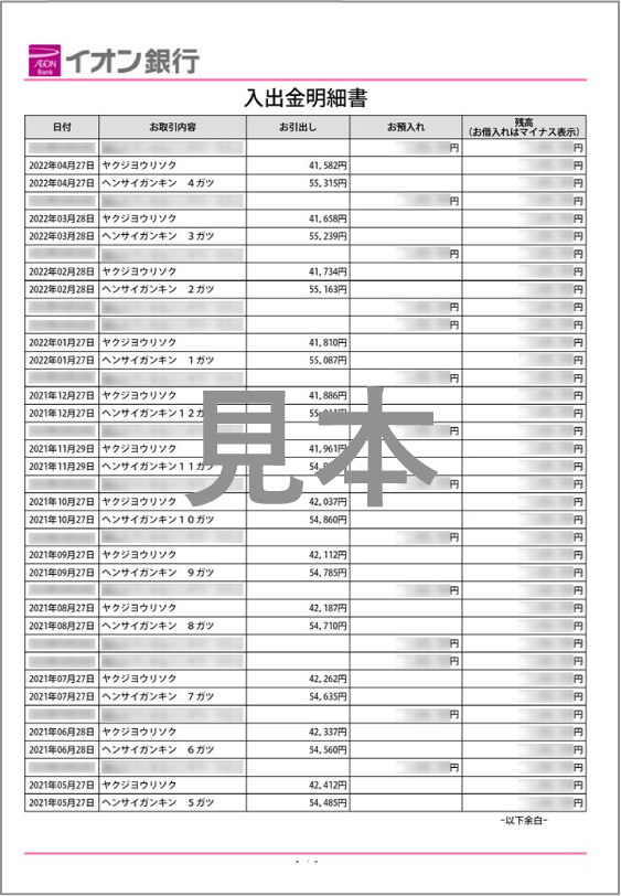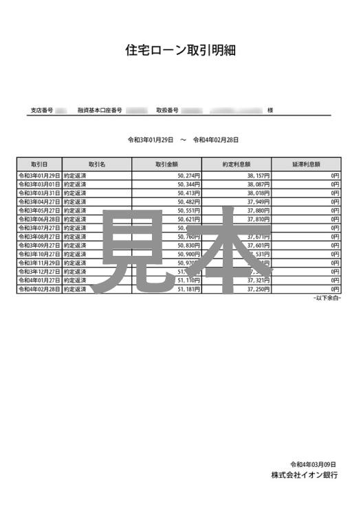 なお、イオン銀行のネットバンキングからの照会で返済履歴証照会もしくは入出金明細照会から当該年分をダウンロードも可能です。