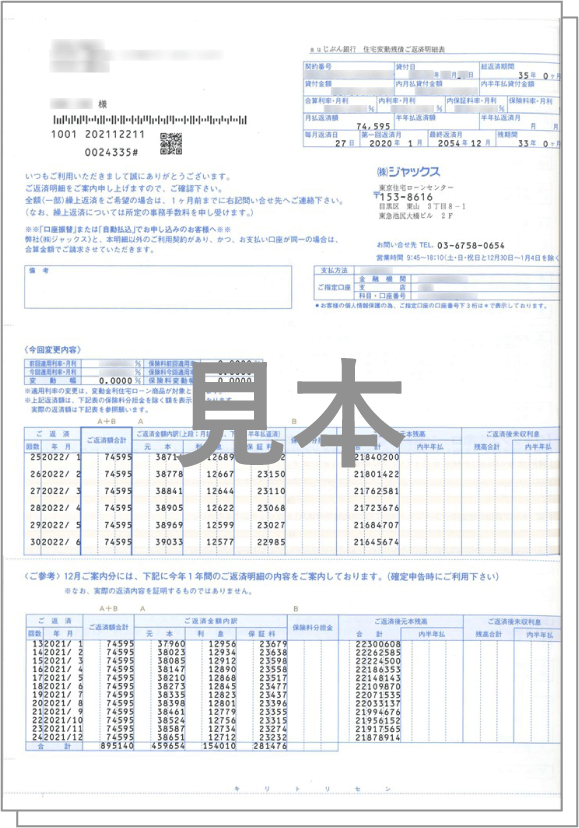 2025年1月~11月までに購入された方は、お手元にございます2025年分の返済予定表をご用意ください。