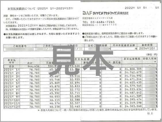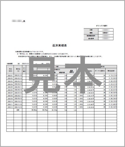 また、年初にSBI新生アセットファイナンス社から前年の返済実績一覧が送られてきますので、こちらでも対応は可能です。共にご用意が難しい場合は、再発行のお手続きをお願いしております。