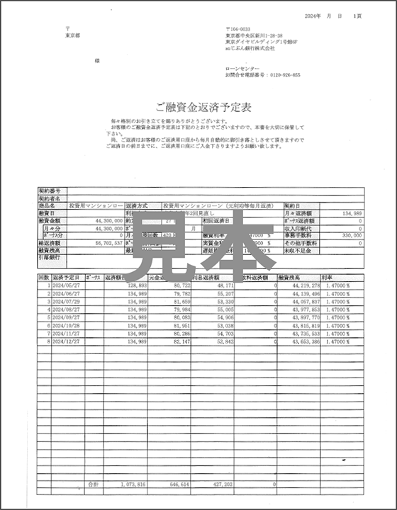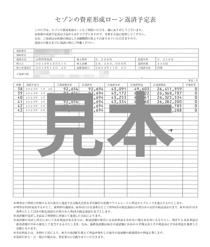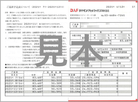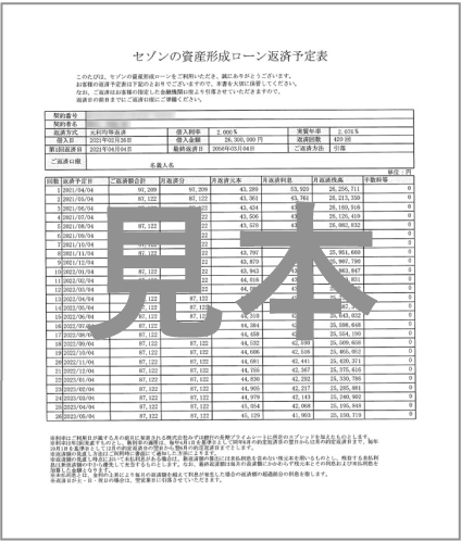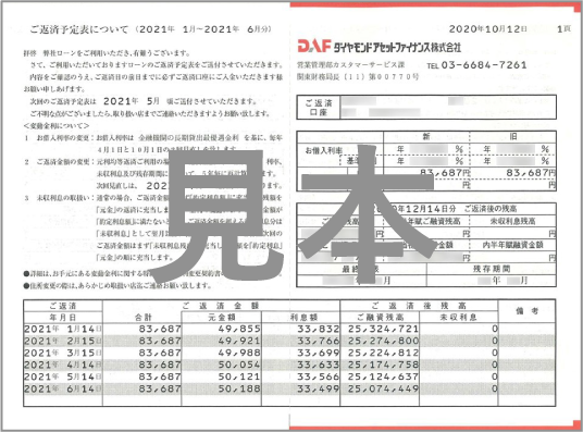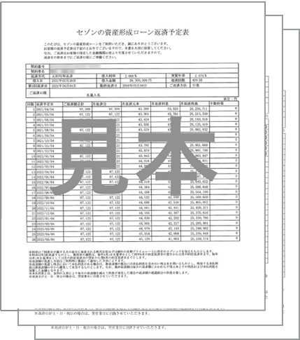 また、お借入時にクレディセゾン社より送られてくる【全借入期間の返済予定表】のご用意でも対応は可能です。